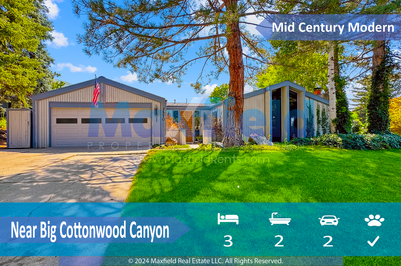 Experience a fully reimagined mid-century modern home, originally crafted by renowned architect Ron Molen, in the heart of Cottonwood Heights at the base of Big Cottonwood Canyon. This single-level residence spans nearly 1,800 square feet and offers an open layout ideal for modern living. Enjoy vaulted ceilings and a signature conversation pit, bright interiors with floor-to-ceiling windows and skylights, stunning mountain views, and a large fenced backyard perfect for entertaining. Perfect for anyone seeking a blend of architectural beauty and practicality. Enjoy walking to the grocery store, local coffee shop and convenience to enjoy the great outdoors. Lease Special $2750 Per month if Leased by October 1st. The lease rate will be valid until the end of the year; then the base rent will be $2900 per month thereafter. PETS: small pets considered with additional deposit and monthly pet fee based on pet. Visit MaxfieldRents. com pet-screening for more info. Smoking Policy: No Smoking or Vaping on the Property Tenant Monthly Recurring Charges: * Advertised Rent; and * All Utilities (utilities vary by property and tenant usage) * Resident Benefits Package of $30 Residents are required to maintain a $100K Tenant Liability Insurance (PDLW) for accidental damage arising from fire smoke explosion, water discharge or sewer backup caused by negligent acts or omissions. Personal renter's insurance is recommended but not required. Tenants will be charged $14.50 per month if they do not have the PDLW with their renter’s insurance. Prior to move-in, tenants are required to pay a Refund Eligible Cash Security Deposit as advertised (typically one month’s rent) or have the option for using our Deposit Alternative. We offer Obligo, which lets you skip paying a security deposit in exchange for a small non-refundable monthly fee. There is also a one-time Lease Initiation Administration Fee of $150. All applicants over the age of 18 must fill out a separate application and there is a limit of 3 unrelated individuals and 2-3 vehicles depending on the unit. Beware of rental fraud and scams and from persons claiming they are getting rid of a property management company or use a google voice number. Please visit MaxfieldRents. com rental-fraud for more information. For a list of qualification guidelines please visit MaxfieldRents. com qualification-guidelines Download our app at MaxfieldRents. com App All information is deemed reliable but is not guaranteed and subject to change. Photos may be of similar units if a multi-family property. Property offered through Maxfield Property Management. We are committed to equal housing opportunities and provide housing opportunities regardless of race, color, religion, sex, national origin, physical or mental disability, or familial status. We Do Business According to the Fair Housing Law.