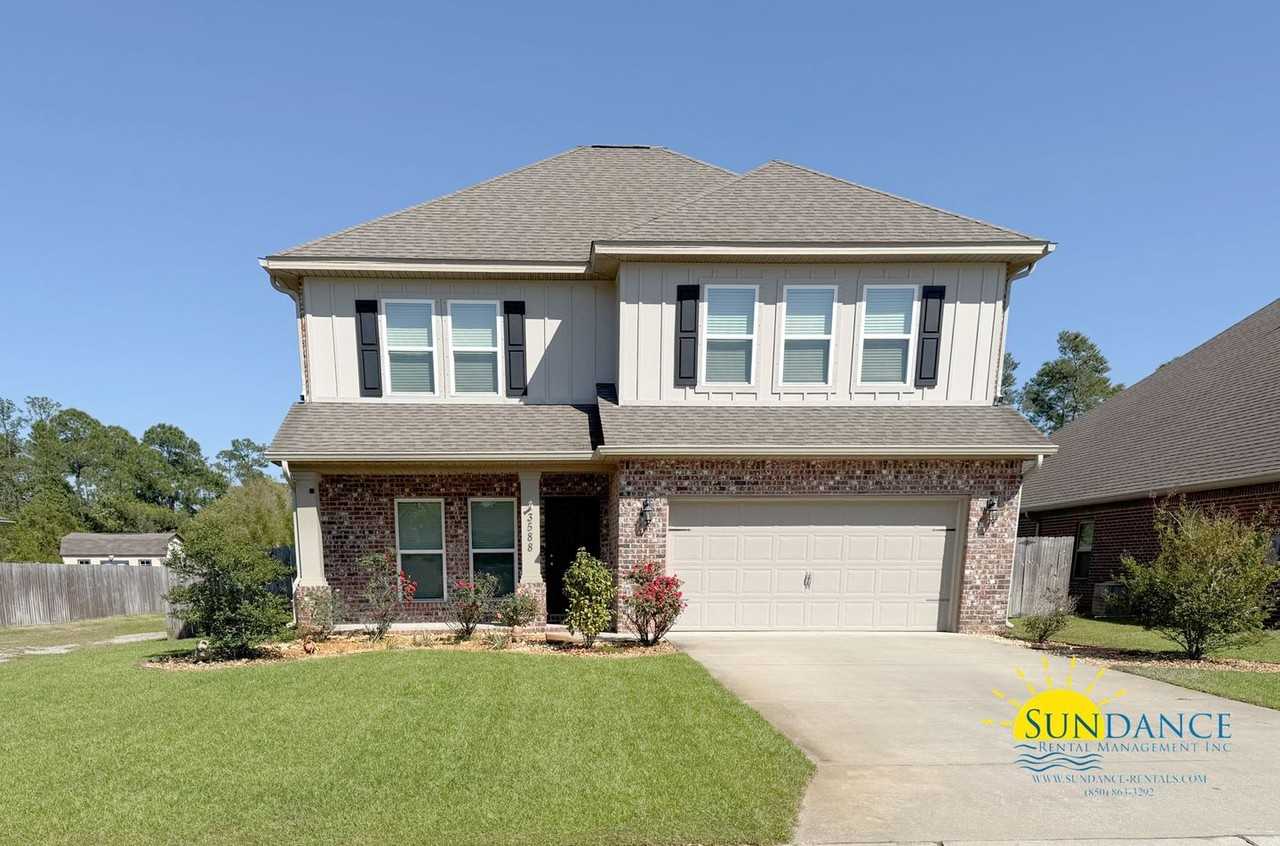 Located in the desirable Treasure Isle Estates subdivision in Navarre near Gordon Evans Road and Highway 87, this well-appointed two-story, 4-bedroom, 3.5-bath home offers exceptional comfort, space, and functionality perfectly situated on a quiet, family-friendly street that ends in a cul-de-sac, with no through traffic. This home features a 2-car automatic garage with additional driveway parking and a thoughtfully designed split-bedroom floor plan for added privacy. The first floor welcomes you with a bright and open living and dining room combination, complete with durable tile and vinyl flooring, while plush carpeting adds warmth throughout the upstairs and bedrooms. The fully equipped kitchen includes a breakfast bar, pantry, ample cabinetry, electric stove/oven, refrigerator with ice and water dispenser, and a mounted microwave, with a dining area just off the kitchen ideal for both everyday living and entertaining. A convenient half bath is also located downstairs for guests. The spacious primary suite is located on the first floor and features a large walk-in closet, dual vanities with granite countertops, a relaxing garden tub, and a separate walk-in shower. Upstairs offers a versatile oversized second living area perfect for a home office, media space, or playroom along with three additional bedrooms, two full bathrooms, and a dedicated laundry room with washer and dryer hookups. Step outside to enjoy a covered patio overlooking a large, fully fenced backyard, plus additional storage space perfect for outdoor living and gatherings. This home truly combines comfort, thoughtful design, valuable included amenities, and a prime location, don’t miss the opportunity to make it yours! Bonus Features & Included Services: Vivint Security System (AS-IS), Hurricane Window Covers, Termite Bond, and lawn care with lawn pest treatments are all included adding convenience, value, and peace of mind. HOA rules and regulations apply. No smoking and no pets are permitted.