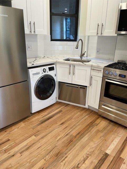 TRIPLE MINT GORGEOUS ONE BEDROOM APARTMENT AVIALBLE FOR SEPTEMBER 1 MOVE-IN!!! The apartment features beautiful hardwood floors, exposed brick wall, decorative fireplace, high ceilings with recessed lighting, beautiful kitchen with white granite counter tops, lots brand new cabinets, high end stainless steel appliances including dual washer/dryer, dishwasher and microwave. The living space is quite large with an open kitchen. Quiet bedroom in the rear of the unit.. The apartment faces north and does get excellent light. The newly renovated bathroom is beautifully tiled. 36 East 4th Street is a charming prewar building located in the heart of Noho. The building is close to all that the neighborhood has to offer - a bit of everything complete with a thriving night life scene, local quiet dining options, great shopping and neighborhood amenities, and a short distance to Washington Square Park, Union Square, Soho, Greenwich Village, and numerous subway lines (6, B, D, F, M, R & W trains). Don't miss this fantastic opportunity.