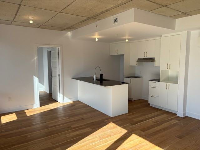 Rosemont, condo neuf 4 1/2 à louer disponible immédiatement Le logement est situé au 4e et dernier étage, avec balcon situé vers le sud à l’abri du bruit de la circulation de la rue Rachel. Deux chambres à coucher fermées, une salle de bain fonctionnelle avec bain douche. Salle à manger, salon et cuisine à aire ouverte avec une belle fenestration. La cuisine à un comptoir en quartz avec des armoires bien pensées pour maximiser le rangement. Entrée laveuse / sécheuse superposées. Thermopompe murale. Un casier de rangement au sous-sol est inclus ainsi que l’accès à un stationnement intérieur et emplacement intérieur pour ranger les vélos. Situé dans un secteur très bien desservi par le transport en commun, à 7 minutes de marche du metro Joliette sur la ligne verte qui vous transporte en 16 minutes au centre-ville de Montréal. À quelques minutes de marche vous avez le choix d’épiceries (Maxi, Provigo), Canadian Tire, SAQ et restaurants secteur des Shops Angus. La complexe sportif du stade olympique qui offre diverses activités pour adultes et enfants est facilement accessible ainsi que le parc Maisonneuve. À proximité vous trouverez des garderies, l’école primaire Saint-Emile, et Sainte-Jeanne-d’Arc et le Cégep Maisonneuve. La piste cyclable sur la rue Rachel vous permet de vous déplacer également dans le secteur. Idéal pour des personnes qui valorisent la proximité et le gain en temps lorsqu’on vit en ville. Exclusion : Chauffage, eau Chaude, électro ménagers, meubles Le logement est non-fumeur (cigarette et cannabis). Enquête de crédit , preuve d’emploi et références des propriétaires précédents seront exigés.