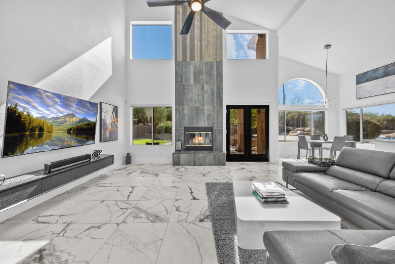 Property Id: 1437261 Majestic Mountain, Sunset Views & Desert Vistas define this singular Black Mountain Property. Generous living space, lots of windows in every room & an expansive backyard compliments this contemporary southwestern home from the outside. The interior is completely remodeled and furnished with high end Copenhagen furniture throughout. The home is full of natural light, vibrant & perfect for entertaining family & friends. There is ample room that seems more expansive under vaulted ceilings in the family room, adjacent kitchen & breakfast nook. The open floor-plan transitions easily to multiple outdoor spaces such as the covered patio, playhouse with deck, large patio with kiva fireplace & built-in barbecue, or around the elevated diving pool with elaborate rock waterfall. Come create memories spending time in the large yard and most certainly around the expansive rock-lined diving pool gazing at beautiful Black Mountain where stunning sunsets occur nightly. Come take a look!