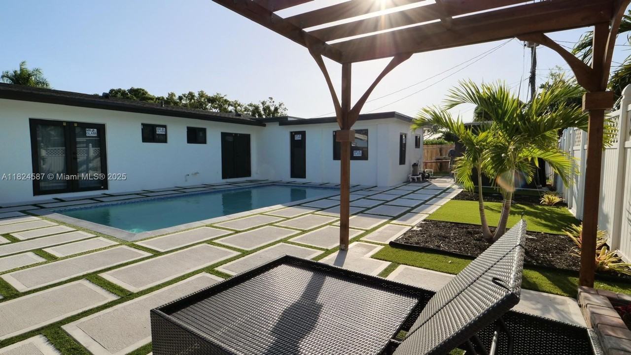 Courtesy of MQ Realty Group Posted by Andrew Coleman with EXP Realty 561-235-0789. Stunning fully renovated 5-bedroom, 3-bath single-family home with sleek finishes and a modern open layout! Features a gourmet kitchen with white shaker cabinets, quartz countertops, and stainless steel appliances. Enjoy a designer backyard with a sparkling pool, stylish pavers, and pergola--ideal for entertaining. This move-in ready gem offers both comfort and style in a prime location with no HOA!