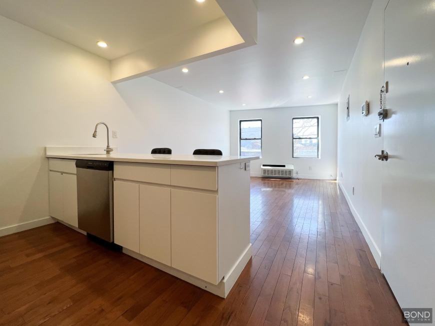ZMP91130398 - Welcome to 36-21 Review Avenue. This one bedroom/ one bathroom unit features a modern kitchen complete with stainless steel appliances and an eat-in island. Other features include glass backsplashes, recessed lighting, hardwood flooring, ample closet space throughout as well as an in-unit stackable washer & dryer. Unit comes equipped with high efficiency PTAC units and a video intercom. Tenant is responsible for all utilities, pets are allowed on a case by case basis. BOND New York Properties is a licensed real estate broker that proudly supports equal housing opportunity.
