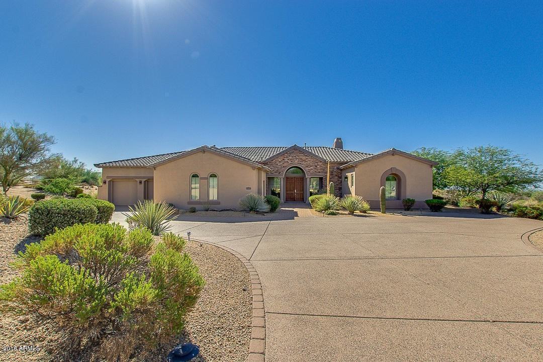 Magnificent 4 br 4.5 bath plus den / office,over 4100sq ft home in gated Sierra Norte,master bedroom with large sitting room,3 bedrooms have private baths,incredible views of Pinnacle Peak,gormet kitchen with slab granite counter tops, top of the line stainless VIKING appliances,built-in fridge,gas cook top, microwave, double ovens,large separate eating area.Over 1 acre cul-de-sac lot with heated pool and spa,large covered patio,3 car garage, beautifully landscaped. DO NOT MISS THIS ONE IT'S A 10. The name of the street fits the house perfectly PEACEFUL LANE. Relax by the gorgeous pool and enjoy the mountain views. North / South exposure.ALSO FOR SALE UNDER MLS#5506674