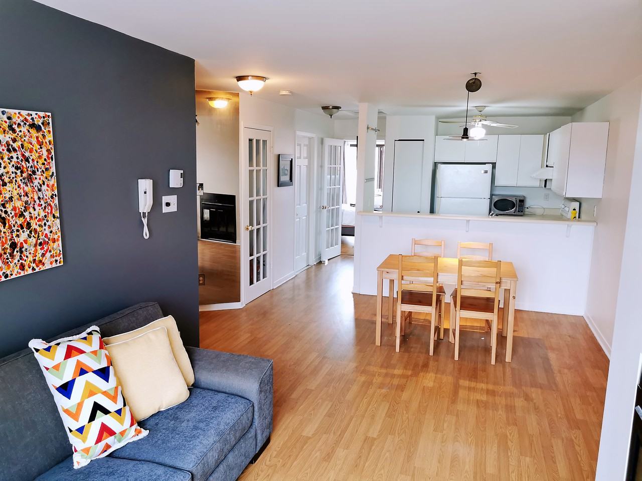3635 boulevard des Trinitaires, Montreal, H4E 4L3, QC, CA Available immediately. **Promotion** Move-in now and start paying rent July 1st. Fully furnished large 1 bedroom condo near Angrignon Metro. This 650 square foot unit is furnished and freshly painted. Included in the unit: - Fully Furnished - Stove - Refrigerator - Dishwasher - Washer & Dryer - Microwave - Air conditioner - Kitchen appliances - TV - Balcony - Street parking spot available for 90$/yr Near: 2 min walk to Angrignon Metro station (Green line) 2 min walk to a very big park. Angrignon Park. *Pets are allowed Listing ID: 30010