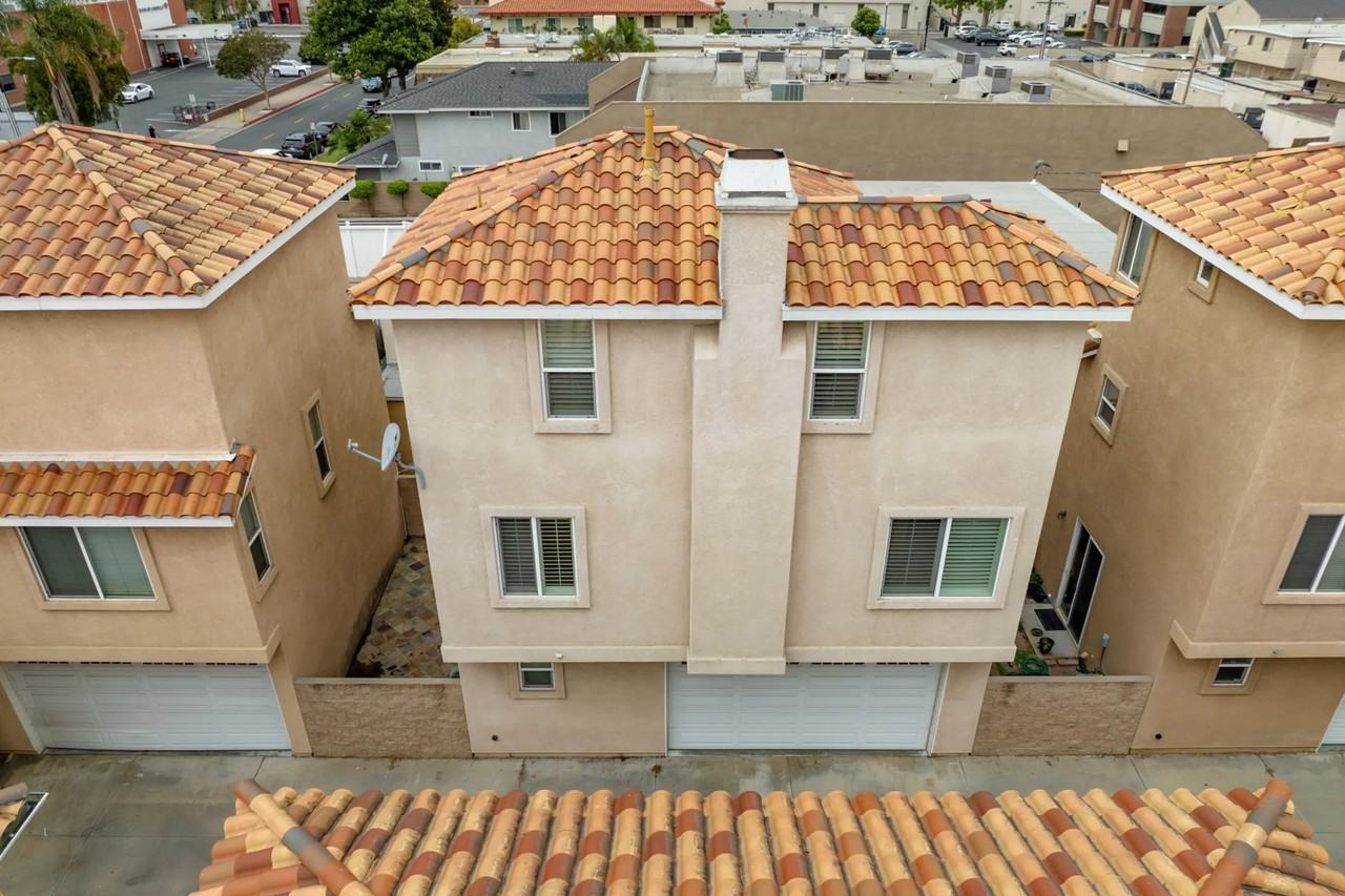 New gray oak laminate flooring and modern baseboards, new remote control ceiling fans in each bedroom, fresh premium paint throughout and a new water heater. Detached, contemporary 3 bedroom and 3 full bath (one on each of the 3 levels) with oversized, luxury master suite occupying the entire third level. First level consists of 2-car attached garage with washer/dryer hookups, one bedroom with en suite full bath and patio area large enough for outdoor dining and bbq; second floor consists of kitchen, open concept family/living room with gas fireplace, a second bedroom and separate full bathroom. Third level is the master bedroom with dual walk-in closets, separate sitting area and luxurious bathroom with an oversized jet tub and walk-in marble shower. All windows are dual pane with custom shutters throughout. Storage closets are located in the garage and the second floor. Central AC and heating. Walking distance to grocery and shops; close 605 and 405 freeway access, top-rated LosAl schools and beach-close.