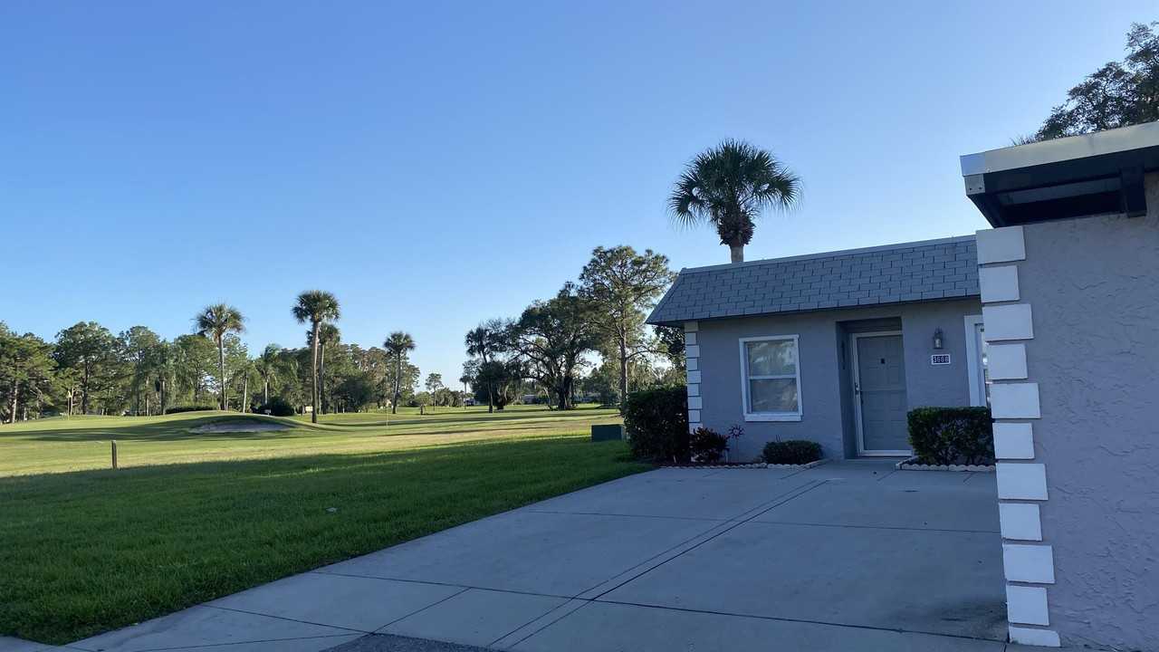 Come enjoy the Florida weather this SUMMER (May through November) in this immaculate, FULLY FURNISHED 2 bed, 2 bath, 1 car carport villa ON the Golf Course in Seven Spring Golf & Country Club, a wonderful gated community! This END unit has great views of the golf course from every window and has an enclosed Florida room to enjoy it all from. There is also a lovely open patio out back, perfect for grilling on the gas grill! Fully furnished with linens, towels, dishes, cookware, and everything you will need for a carefree vacation! This unit has a KING sized bed in the master and shower in master bath. The guest bath has the full tub and shower set up at the front of the unit with (new in 2024) Queen bed in the 2nd bedroom. The kitchen has refrigerator, range, built in microwave, dishwasher, disposal and a pass through to the dining area so you don't feel trapped in the kitchen while everyone else is having fun in the other room! The villa is light, bright and spotlessly clean with tile floors throughout! You'll be able to relax in the comfortable living room while you watch the sun set over the golf course every evening, unless you are out there swinging a club! Located in the Seven Springs Golf and Country Club, this community is sought after and for good reason! There is a laundromat on site and a community pool just minutes away, as well as the great golf course and clubhouse! The rent INCLUDES the water, sewer, trash, first $100/mo of electric (tenant responsibility for over $100/mo) cable, internet and community services! Fully refundable Security deposit of $500, community application fee of $150, 1st time tenant application fee of $40/person but the application fee for returning tenants is waived. Don't forget the 12% tourist tax and there is a $200 cleaning fee. All funds must be received prior to arrival. We take care of registering you with the HOA and once you get past the front gate, you are free to enjoy your stay without having a thing to worry about