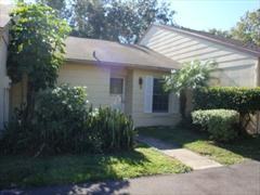 Cozy one story villa tucked away in Bay Towne of Safety Harbor. Close to downtown and local parks. Open floor plan with eat in kitchen and breakfast bar to the living/dining area and sliders out to screened lanai with storage area overlooking spacious back yard. There is a stackable washer/dryer in the hall closet. Master bedroom in the back with great size closet. This is a non smoking residence. Community pool nearby.