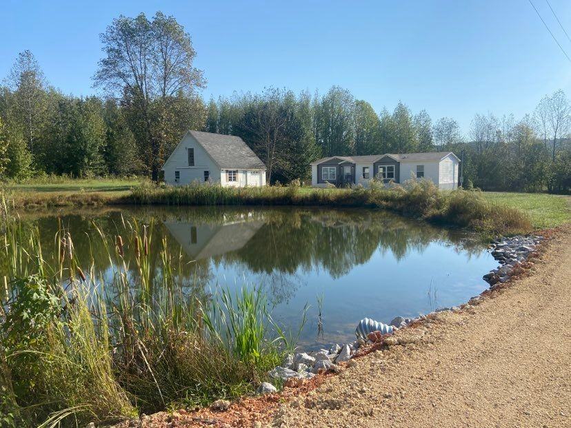 3 bedroom, 2 bath double wide mobile home set on a secluded lot with large yard and pond. Detached garage with upstairs storage.