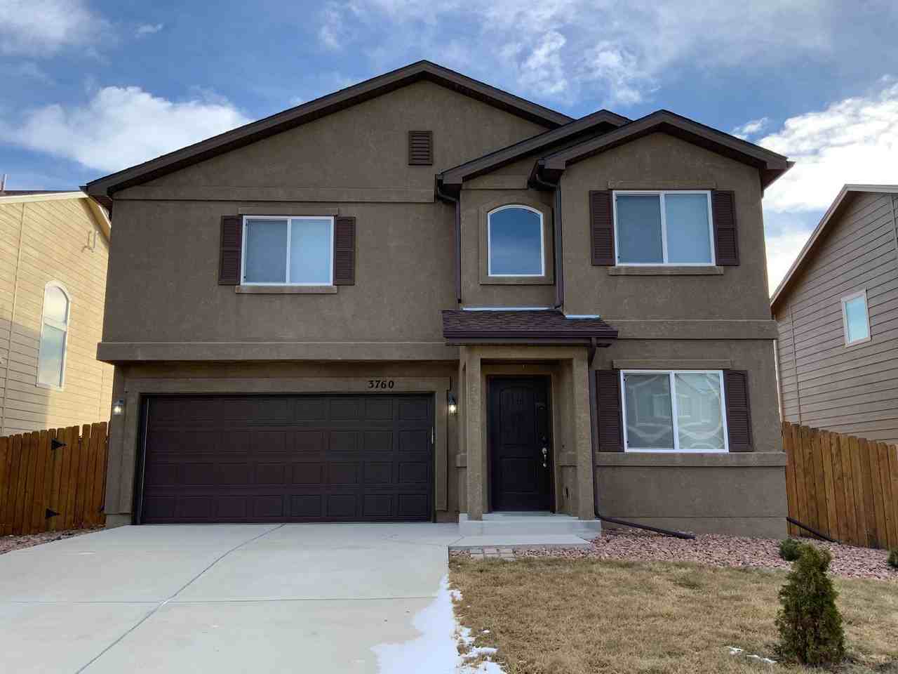 Gorgeous 4 Bedroom Property close to Peterson AFB! Landscaped front lawn, stucco exterior and covered front porch welcome you into spacious and flowing open main level floor plan! Formal living room/flex room and large family room with beautiful LVP flooring! Large kitchen features stainless steel appliances, tile flooring, island and pantry! Dining area walks out to fenced and landscaped backyard! Primary suite on upper level features walk in closet and attached 5 piece bath with dual vanities and soaking oval tub! 3 additional bedrooms on upper level and easy access to laundry room with washer/dryer hookups! Aditional property amenities include central air, sprinkler system and attached 2 car garage! All that's left is to move in :) *Icemaker on fridge disconnected from usage* **Barn door to be removed at primary bathroom** ***Pictures have been virtually staged***