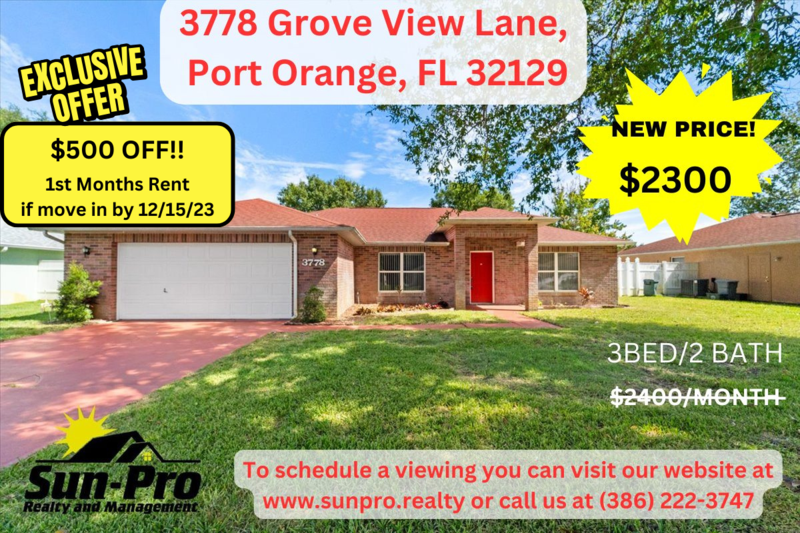 Interested in leasing 3778 Grove View Ln, Port Orange, FL 32129, USA? We have detailed property and location information to help you better understand the unit and the neighborhood. Our team is working on gathering photos, amenities, transportation, and local school information in order to help you make your decision on where you want to live. Below, you can compare the rent price at 3778 Grove View Ln, Port Orange, FL 32129, USA vs overall rent prices in The Groves, FL. We have compiled nearby businesses and things to do close to 3778 Grove View Ln, Port Orange, FL 32129, USA.