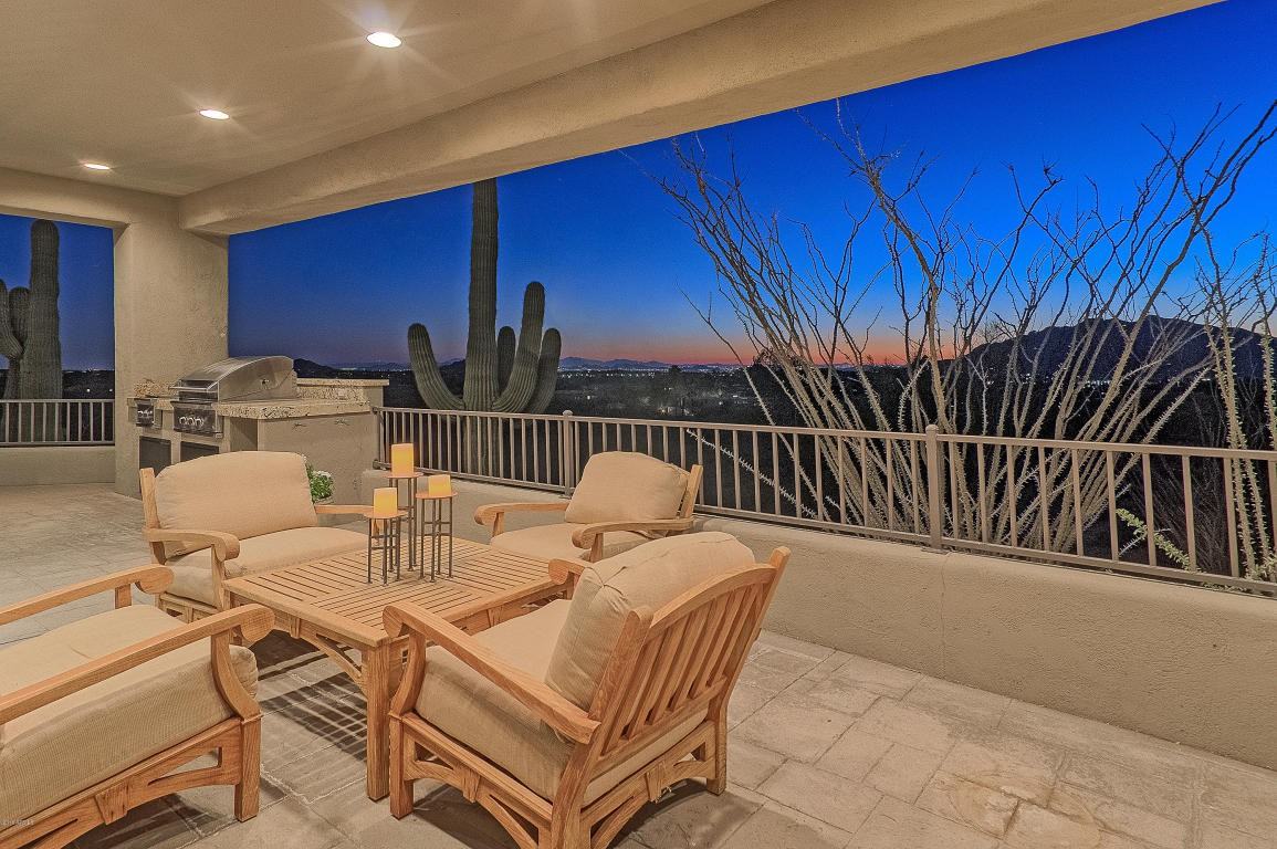 ''Stirrup Circle Ranch'' - Beautifully tucked into the rolling hills of Carefree, this approximate 10 acre gated equestrian estate offers a main house with attached guest house and fully-equipped barn fitted with six over-sized stalls with runs, arena, two turnout areas, and an RV barn. The main house offers an ideal setting for effortless living and is complemented by a heated indoor diving pool. Impressive mountain and city light views surround the main house, providing the picturesque backdrop for outdoor entertaining. The spacious master suite boasts a handsome office, dual vanities, steam shower, jetted soaking tub, and private patio.