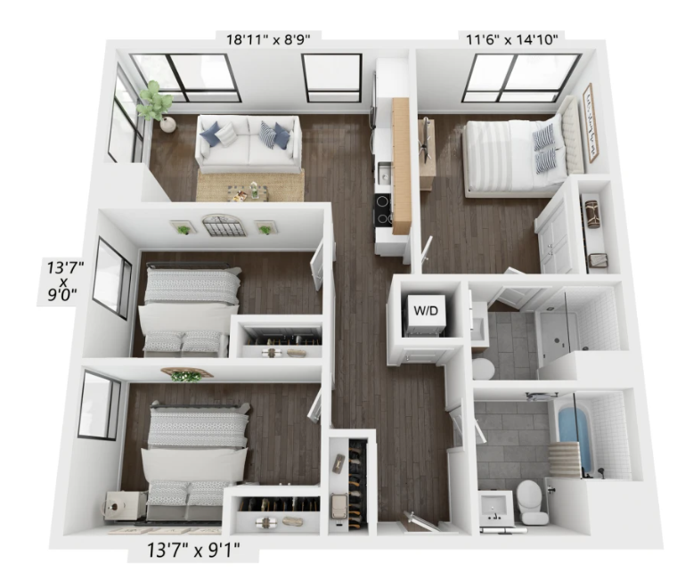 In-Unit Laundry • Dishwasher • Air Conditioning • Hardwood Floor • On-Site Laundry