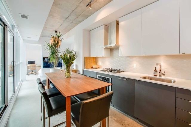 A beautiful, unique and modern 2Bed/2Bath suite in one of Toronto's most desirable neighbourhoods. Floor-to-ceiling windows letting in lots of light and overlooking a gorgeous and serene residential courtyard, designer kitchen with high-end appliances, in-suite laundry, gas connection for a bbq on a 60sqft balcony. The only unit in the complex with polished concrete floors and ceilings! Comfortable, clean aesthetic and fantastic layout. Includes built-in kitchen appliances, stacked washer/dryer, Hunter Douglas window coverings, parking, storage locker, indoor bike locker for two bikes, and outdoor enclosed spot for one bike. Building amenities include two bookable party rooms, small gym, movie room, yoga room and pet 'spa'. Only steps to 3 streetcar lines, TTC subway, UP Express, GO Transit, High Park, St. Joseph’s hospital, and renowned cafes, restaurants and shopping of Roncesvalles, grocery stores, pharmacies and salons – all within easy walking distance of the home. Applicants are kindly asked to provide rental application, credit report, T4 and/or recent pay stubs and employment letter.