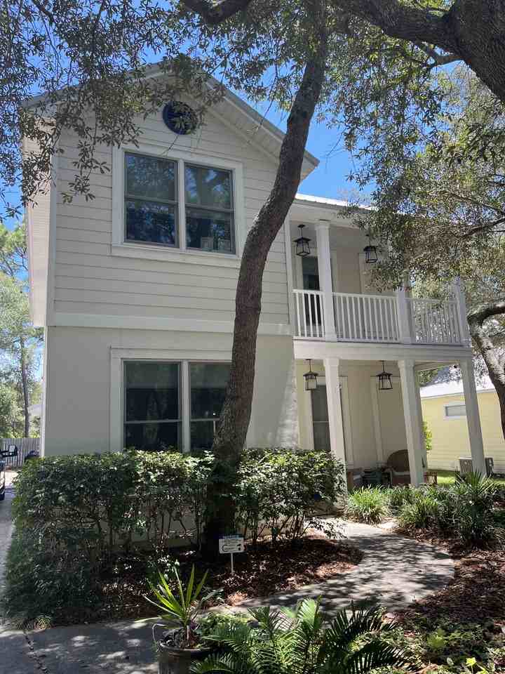 Welcome to 380 Clareon Drive, an UNFURNISHED, 2,124 sq. ft. remodeled home in the prestigious White Gulfview Estates on 30A. Bright, open and move-in ready, this three-bedroom home features a 4th large flexible room perfect for a home office or craft room. The open-concept main level has French Oak engineered hardwood floors throughout. The seamless living/dining/kitchen open concept flows well as the space is bright and airy with new hurricane proof windows and french doors. The French doors open to a large screened-in porch that feels private, with a landscaped and tree-lined yard. Highlights: 3 bedrooms (all upstairs) + 4th separate flex room downstairs. Spacious primary suite with double vanity and a large jetted tub. There is a lovely upstairs balcony overlooking the trees in the front of the house, perfect for a morning coffee. Gourmet kitchen: quartz countertop breakfast bar, five-burner gas range, farmhouse sink, built-in bar nook with a beverage center. Large screened porch, secluded backyard, long driveway (rare on 30A) and a detached garage. Private gated beach access at the end of the street (7 minute walk) with dedicated golf-cart parking spaces. Perfect for enjoying the pristine white sand and emerald waters. Rent includes HOA fees, quarterly HVAC maintenance, pest control, quarterly yard treatment. Enjoy quiet, upscale neighborhood living with easy access to the 30A lifestyle. Contact me to schedule a showing. One year lease. Non-smoking rental. Would accept a small dog or cat on a case by case basis. HOA fees, garbage and pest control included. Irrigation system maintenance and quarterly lawn treatments included. HVAC Maintenance twice a year included.
