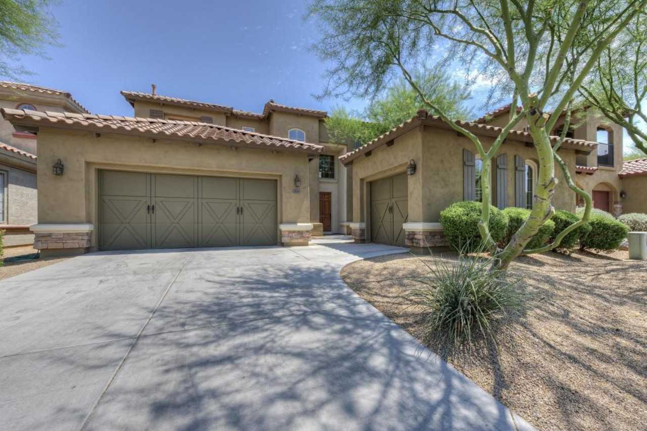 Spectacular home in Aviano near Desert Ridge offering great living space! The upstairs contains 3 secondary bedrooms, large office, separate computer center area and media room. Main level of home offers the master suite, gourmet kitchen, breakfast nook, family room and formal dining room. The basement contains 2 bedrooms, 1 bath w/double vanities and a great space for a second family room or game room. Three-car garage and spacious grassy backyard! Conveniently located near Desert Ridge shopping and dining along with freeway access. Granite counter tops throughout, new carpeting, new hardwood floors in dining room freshly painted interior of home. Immaculately maintained!!!