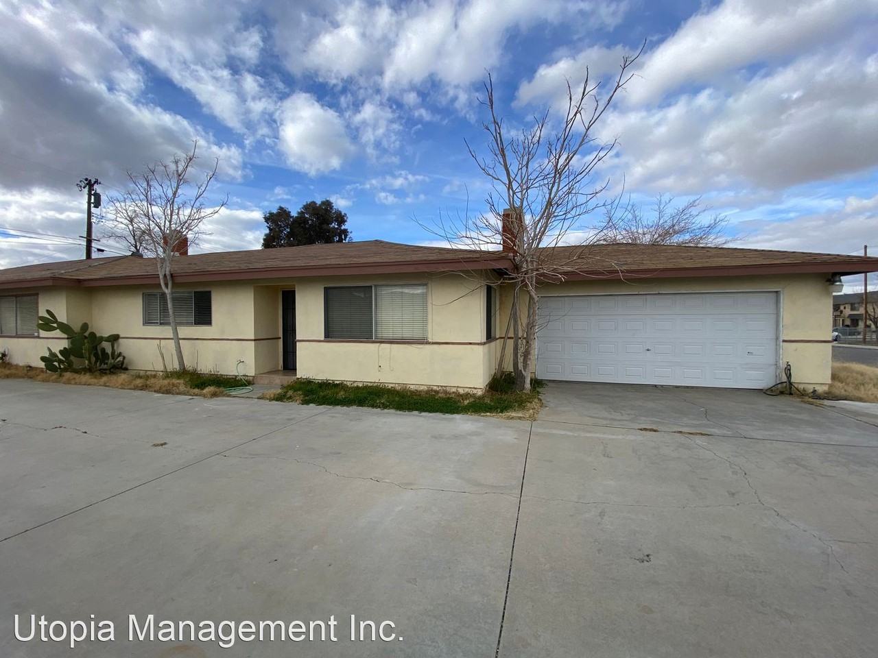 Palmdale 2 bedroom Duplex - Fantastic 2+2 located in Palmdale close to all conveniences. Living room with fireplace! Updated kitchen with eating area and direct access to 2 car garage. Bedrooms sport new laminate flooring. Primary bedroom has 2 closets and en suite bath with new vanity. Additional bedroom with shared hallway bath with new vanity. Requirements are income 3X the rent and minimum 625 credit score. 1 small dog will be considered with $35 pet rent. Breed restrictions apply. Apply at www utopiaManagement com GROUP SHOWING SCHEDULED FOR MARCH 15H AT 4:00PM No Cats Allowed