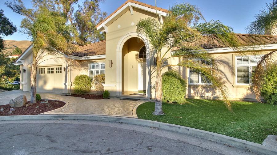 Stunning estate (10+/- yrs new) with expansive views located on a gated cul de sac of only four homes. 5 bed, 4 bath, 4,518sf on a large 14,810sf lot, including full bedroom and bathroom on the main level . Custom executive luxury home with the finest quality materials and finishes throughout. Dramatic formal entryway with custom double door, soaring ceiling, and clerestory windows. Gourmet kitchen features granite countertops, ample custom cabinetry, top of the line stainless steel appliances, large center island w/prep sink and breakfast bar, and adjacent breakfast nook. Spacious light & bright formal living room offers a marble-faced fireplace w/custom mantle. Large elegant formal dining room. Family room features built-in cabinetry and double French doors with access to outdoor patio. Beautiful master suite with fireplace, double French doors leading to outdoor covered balcony, and separate his & her walk-in closet w/custom built-ins. Master bath features a marble tiled floor, dual sink vanity, Jacuzzi tub, and oversized stall shower; separate area with bidet and commode. Other amenities include recessed lighting, skylights, hardwood floors w/cherry in-lay, detailed molding, coffered ceilings, plantation shutters, built-in speakers, dual zoned high efficiency heat & air, and much more. Tasteful warm color palette throughout. Laundry/utility room with sink and built-in cabinetry conveniently located near bedrooms. Open floor plan is ideal for indoor/outdoor entertaining. Fully finished oversized 3-car garage with custom driveway. Breathtaking views of Silicon Valley. Prime East Foothills neighborhood near SJ Country Club and Alum Rock Park. San Jose Schools: Noble, Piedmont MS, & Piedmont Hills HS.