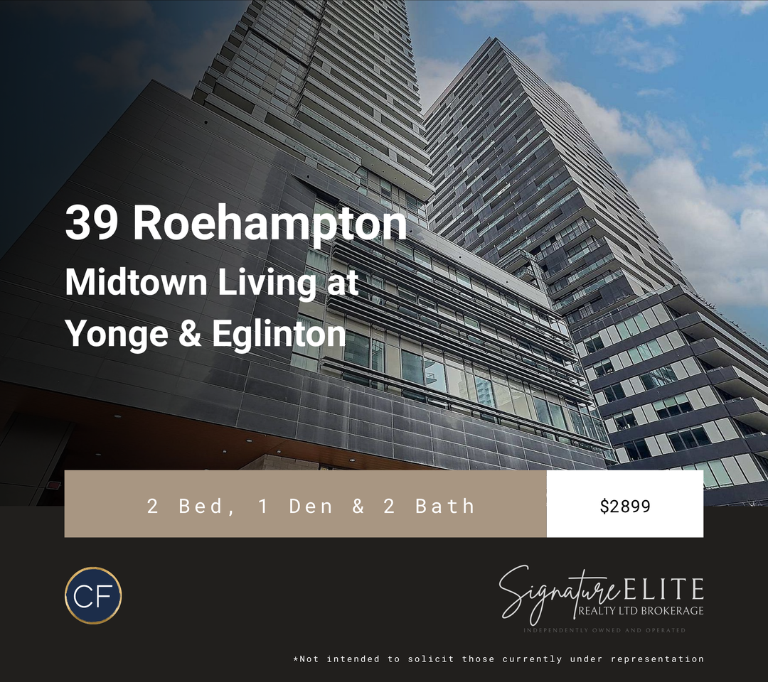 If you’ve been searching for a Midtown space that actually fits your lifestyle this is it. This 2-bedroom + den layout offers the kind of flexibility most condos simply don’t. Whether you’re working from home, need a quiet space to recharge, or want that extra room that makes everyday living feel seamless, this layout delivers. The open-concept living area flows effortlessly to your private balcony perfect for morning coffee or unwinding at the end of the day. Inside, you’ll find modern finishes, integrated appliances, and a clean, functional kitchen designed for both everyday living and entertaining. Both bedrooms are thoughtfully sized, with the primary offering a bright, airy feel and its own ensuite. The second bedroom is ideal for guests or additional living space, while the separate den gives you a dedicated work-from-home setup without compromise. Located in the heart of Yonge & Eglinton, you’re steps to transit, restaurants, cafés, fitness studios, and everything Midtown living has to offer ideal for professionals who value both convenience and lifestyle. 🚨 Book Your Showing Before It’s Leased Send: • Full name • Phone number • Email • Move-in date 📞 I’ll contact you directly to qualify and secure your showing. 🔥 Didn’t love this one? I’ll find you better. I work with multiple listings across Toronto including units not yet advertised. Tell me what you’re looking for and I’ll send you curated options. 📄 Application Requirements • Credit report • Proof of income • Government-issued ID 🏡 Lorraine Galura, Realtor Signature Elite Realty | Carol Foderick Real Estate Group If you have a realtor, please have them reach out directly. **Not intended to solicit those currently under contract with another brokerage**