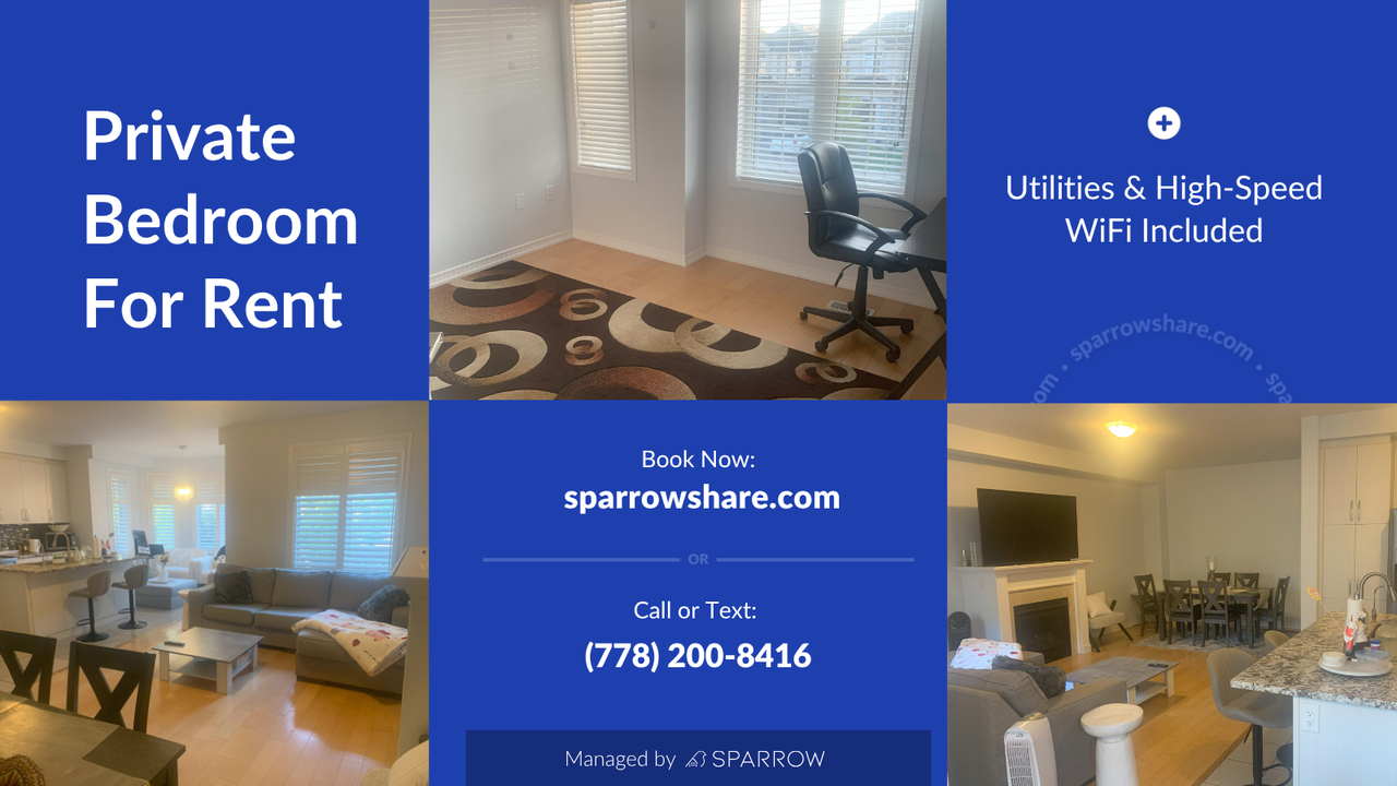 📩 Inquire Now: For the fastest response, text me at +1 778 200 8416 Cozy Room in Upper Canada Court Welcome to our inviting shared rental in the charming neighborhood of Upper Canada Court, Halton Hills. This home offers the perfect balance of comfort and convenience, with easy access to nearby parks, shopping centers, restaurants, and everyday essentials. The rental includes bicycle parking and all essential utilities—air conditioning, heating, and high-speed internet—so you can settle in with peace of mind. The atmosphere is warm and welcoming, making it an ideal space for anyone seeking a quiet and cozy place to call home. About Bedroom A – Halton Hills, Ontario This bright and spacious private bedroom offers comfort and privacy, complete with its own private washroom. A dedicated parking spot is also included, making it ideal for anyone with a vehicle. Ideal for male and female housemates. 🛏 Room Details: Private bedroom Private bathroom Unfurnished (bring your own furniture) Parking included 📅 Availability: Now Available now 💵 Rent:$830/month 📄 Lease Term Options: 6 to 12 months 🛌 Bedroom Type: Private 🚿 Bathroom Type: Private 🪑 Furnished: No What This Home Offers Utilities & Amenities ✅ Air Conditioning ✅ Heating ✅ Internet Shared Items ✅ Dishwasher ✅ Fridge ✅ Microwave ✅ Stove ✅ Television Parking & Facilities ✅ Free On-Premise Parking ✅ Bicycle Parking Things to Know Shared Spaces 🍽️ Kitchen 🪑 Dining Room 🛋️ Living Room House Rules Guests ✅ Daytime guests allowed 🚫 No overnight guests allowed Smoking & Substances 🚭 Smoking allowed outside only 💨 Vaping allowed outside only 🌿 Cannabis use allowed outside only Pets 🚫 No pets allowed 💰 Payment Terms: Security deposit required after signing the agreement First month’s rent must be paid before move-in date Security deposit refunded at the end of the lease (conditional on the property being left in its original condition, minus normal wear and tear) Additional Benefits: ✅ Tenant Insurance Included: Renting through Sparrow includes tenant insurance at no extra cost, providing you with added peace of mind. ✅ Credit Building: Your rent payments through Sparrow will be reported to credit bureaus, helping you build and improve your credit score. 📢 Disclaimer: This listing has been syndicated from SparrowShare.com, including its content, rental terms, and images. Sparrow verifies the identity and compatibility of applicants. The advertised property is owned and/or managed by Ed from Sparrow Living Inc.