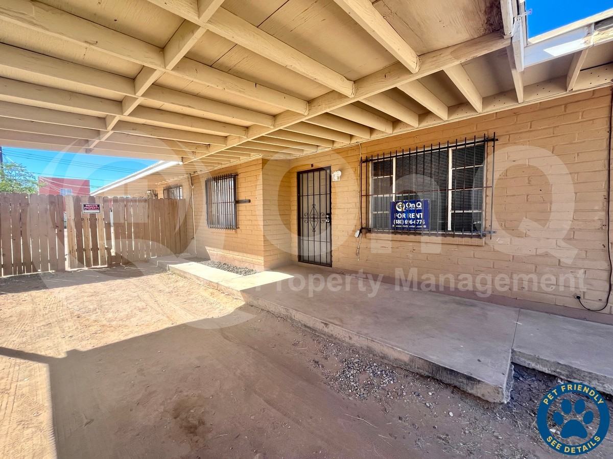 ** Application fees credited back at move-in. ** This charming 820 sq. ft. 2-bedroom, 1-bath apartment unit in Tucson offers a comfortable and inviting living space. The desirable single-story floor plan eliminates the hassle of stairs, providing convenience and ease of access. Beautifully updated interior, featuring neutral paint tones. The entire unit is finished with durable tile flooring throughout. The kitchen is well-equipped with included appliances, making meal prep a breeze, and offers plenty of counter and cabinet space. The open-concept living and dining areas create a flexible space. The split bedroom floor plan ensures privacy, with two nicely sized bedrooms, each offering ample closet space for storage and organization. The full bathroom is centrally located. Additional features include blinds and ceiling fans. Located in a desirable South Tucson neighborhood, this unit is close to all the essentials and provides easy access to I-10. **a monthly $75 fee for water, trash, and sewer (Residential Utility Billing System) is due with rent each month.** Pet Policy: Dogs and Cats Allowed with the following exceptions: Up to 1 small pet will be considered (11-25 lbs) APPLICATION: $65 Application Fee Per Applicant 18 years or older (Nonrefundable). Once all required documents have been submitted by every applicant, please allow 24–72 business hours for processing. Move-in dates more than 21 days after application approval require additional approval. Submit your application: https screen boompay app a L7Dmbl4H83vxd0cN0KGJ LEASE Length: 12-month minimum (longer lease terms may be negotiable) INITIAL Move-in Costs: Applicants may choose between a traditional security deposit or a Security Deposit Alternative program. To learn more about the Security Deposit Alternative benefits, visit https www depositalternative com A one-time lease preparation fee of $250 plus the first month’s rent is due prior to move-in. If the applicant has a pet, a $150 nonrefundable pet fee per pet applies. RECURRING Monthly Costs: A 4.99% administration fee applies. If the applicant has a pet, $35 monthly pet rent per pet applies (does not apply to assistive animals). All On Q Property Management residents are enrolled in the Resident Benefits Package for $49. This package includes liability insurance, credit building to help boost your credit score with timely rent payments, a move-in concierge to make utility connection and home service setup simple, a Renter to Buyer program, and more. *Other terms and conditions may apply. The list price is base rent and other recurring monthly costs may apply. All information, including advertised rent and other charges, is deemed reliable but not guaranteed and is subject to change. By submitting your information on this page you consent to being contacted by the Property Manager and RentEngine via SMS, phone, or email.