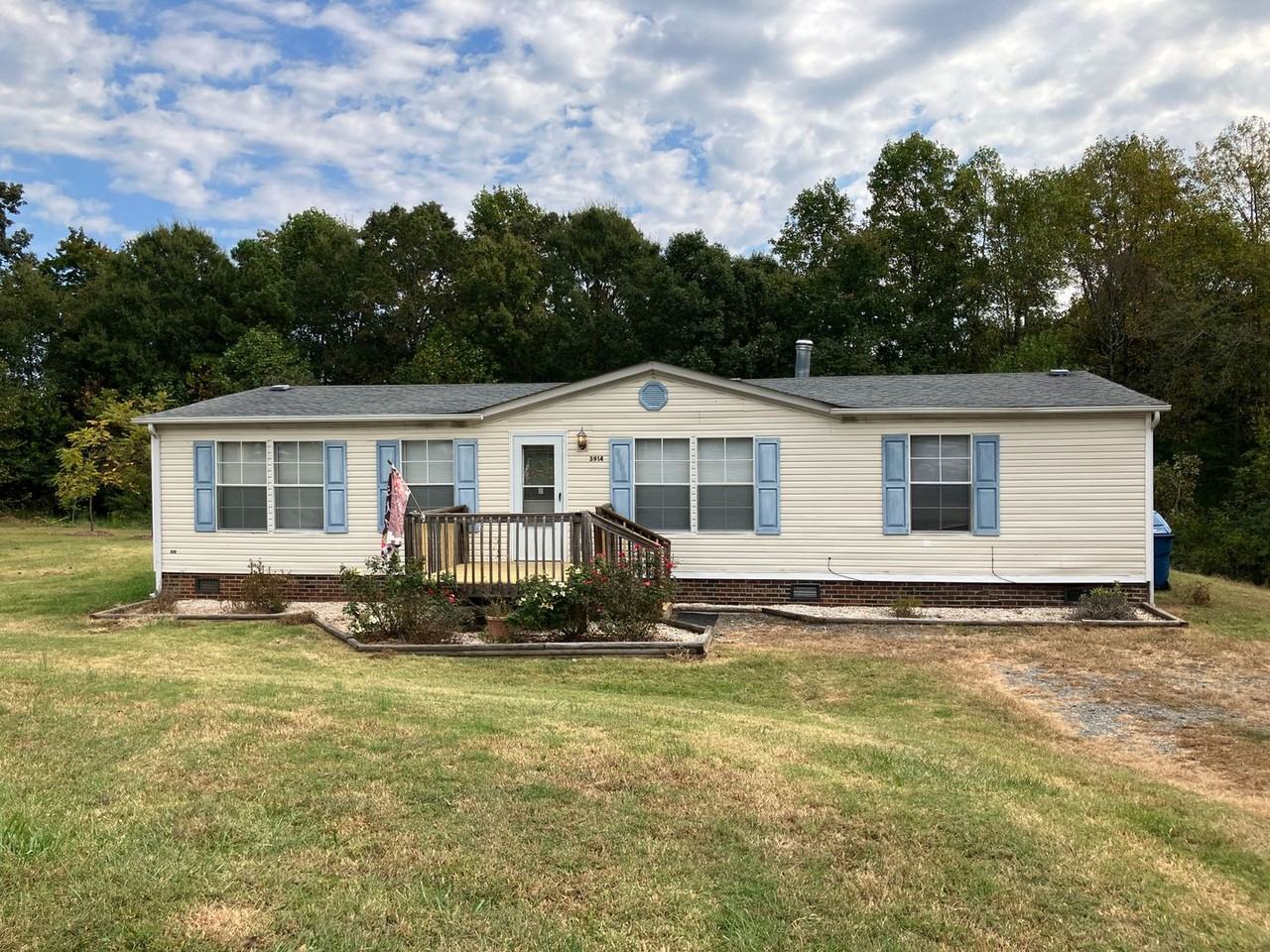 Great three bedroom, two bath double wide in the Mountain View area of Hickory. It features hardwoods in the living and dining rooms, a split floor plan with primary suite (attached full bath and closet) on the other side of the home with additional bedrooms and a full bath. Two decks out back and large yard. This home is pet friendly with a nonrefundable pet fee. Please, no dangerous breeds.