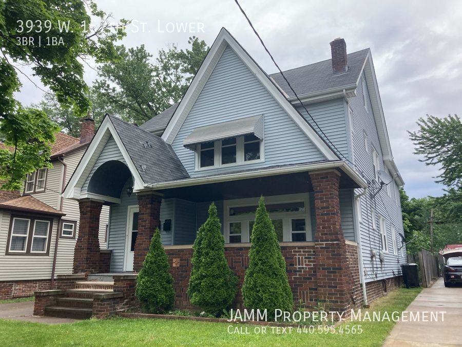Lovely 3-bedroom 1 bath lower unit duplex that is full of character with a charming front porch! Freshly painted with beautiful hardwood floors and brand new kitchen appliances. The basement has plenty of space for storage and laundry hook-ups. Small pets only. Triskett to Lorain to W. 157th. $40 application fee each (credit and background check). Contact JAMM Property Management for more information! Call/text 440.584.0146.