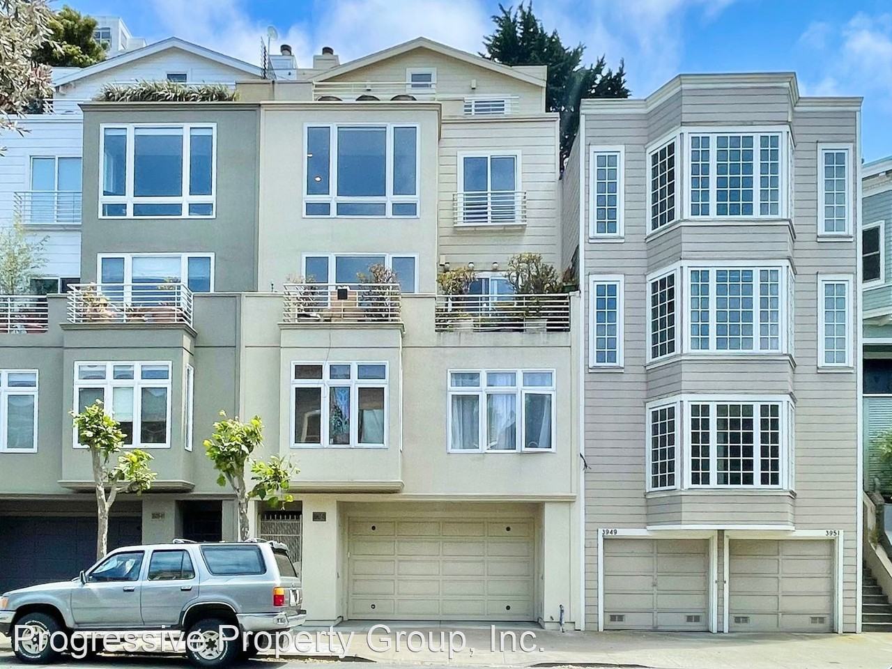 Dolores Heights STUNNING VIEW 2-Level Condo! 2 Car Parking! Hot Tub! PROGRESSIVE - This spacious, 2-level modern condo has 3 large bedrooms, a small office, and 2.5 baths. The penultimate in modern design coupled with the best views in all of San Francisco, it contains a large deck off the open plan living room and private decks off 2 of the bedrooms! PLUS in-unit laundry, 2 car tandem parking, and an elevator! TOP FLOOR: - Large, open plan living room, dining room and kitchen with two sliding glass doors leading from the living room out to a huge front deck with sweeping views of all of San Francisco! The living room also has a gas fireplace and lovely hardwood floors. - Adjacent half bath with office nook. - Spacious kitchen contains top of the line stainless steel appliances, granite countertops, a deep sink, yards of cabinet space with huge skylight and windows overlooking private bamboo landscaped back patio area. - Open plan dinning area with room for a table for 10, PLUS an open plan family room off the kitchen. - Out the French doors off the kitchen is a small garden and spiral staircase that winds up to a stunning sky top deck with million dollar views of the city! LOWER FLOOR: - Huge master bathroom with smashing city views, a big walk in closet, and an en suite bathroom with tub and separate shower. - 2 additional large bedrooms, both with their own private terraces. - A shared bathroom with shower over tub and custom tile work and large vanity. - Washer and dryer in-unit - Elevator leading to the garage Other features of the residence include: - Approximately 2,200 square feet of living space, per owner representation - Designer light fixtures and controls, dimmers - 2 car tandem parking - Small dog considered with additional $500 deposit TERMS: - Rent $7,250/month - Security Deposit: 1.5 times rent - 12 month minimum lease - Ready for immediate occupancy - Tenant pays all utilities - No smoking For questions, or to schedule private showing, please respond to this ad or TEXT 415-680-7546. LOCATION: 3945 19th Street @ Sanchez (Dolores Heights) CA DRE License # 01905856 Progressive Property Group, Inc