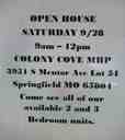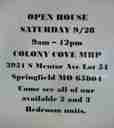 price reduced Lot 59. This is a 4 bedroom, 2.5 bath double wide mobile home in a clean, private, quiet, beautifully maintained mobile home community. It is located near Galloway Village and just a short drive south from Battlefield Road in southeast Springfield, Missouri. This unit is a split floor plain with 2 bedrooms and a bathroom located on one side and another bedroom plus a large master bedroom, on the other. There is a large master bath with soaker tub and walk in shower. Washer dryer hook ups and a half bath are conveniently located across from the kitchen and breakfast nook. Private parking and outdoor spaces with a deck and a shed for storage. $1200 rent, $1200 deposit. One small cat or dog under 20 lbs will be considered with pet deposit/rent. Please call our office anytime between 8:30 and 5:30 Mon-Fri. To apply, our address is 3951 S Mentor Ave Springfield, MO 65804. There is a $30.00 application fee for anyone over 18 years of age.