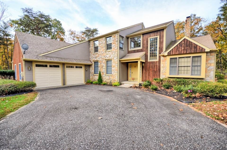 Gorgeous Wellesley model. 3700 sf ft stone front exterior on Cul de sac in Voorhees. Large basement and 2 car garage with 2 new doors. Grand 2 story foyer. New granite in kitchen and hardwood floors throughout first floor. 1st floor study with built in bookshelves, 2 gas fireplaces, 9' ceilings, 2 decks, huge master suite w/sitting rm & fabulous bath w/garden tub. Lots of built-in shelving in rooms and some bedrooms. Sunken in Family room with fireplace and new back door. Large Living room with Fireplace. Formal Dining room. Eat in kitchen with granite ct tops, large pantry, breakfast room and bar seating. New 2 zone gas Heating and Air conditioning. Private wooded lot.
