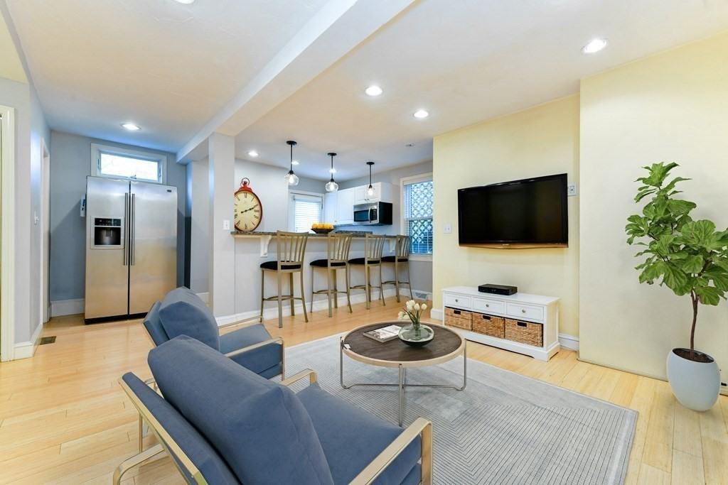 Opportunity knocks! Welcome to Precinct One, Dedham's historic and premier location. A short walk to the town center amenities, theatre, library, shops, and restaurants. This unit is on the 1st level. The original front door greets you, and just down the hall, you enter this renovated condo unit. Bright and cheerful bamboo flooring throughout. The quainliving/tvtv room opens into the kitchen. White cabinets and stainless steel appliances. Fantastic granite counters with breakfast bar area with seating. The door off the kitchen steps out to a lovely side yard with a private deck for grilling and outdoor entertainment. One bedroom, bathroom, and several closets on this level. The finished space downstairs offers a 2nd bonus room with a closet. It could be used as a home office, gym, or guest room. You choose! Off-street tandem parking for 2. Welcome home! DON'T APPLY THROUGH AVAIL. CALL/TEXT US AT 617-765-4219. Listing is provided by The Watson Team - RE/MAX Way ****