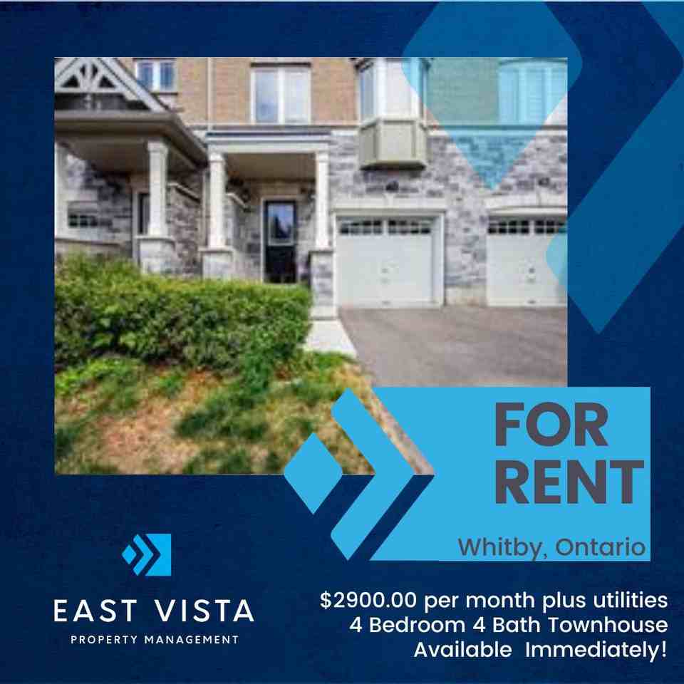 STUNNING 4-BDRM TOWNHOUSE FOR RENT IN WHITBY Contemporary Kitchen with Stainless Steel Appliances, Breakfast Bar and ample storage High-quality flooring throughout – no carpeting Four good-sized Bedrooms, two 4-piece Baths and two 2-piece Powder Rooms Single Car Garage, one parking space in the Driveway Over 1900 sq ft of living space We request that you fill out a brief pre-qualification questionnaire through this link: https forms gle xsauNE61mnfHGuym7 Only those selected for a Showing will be contacted.