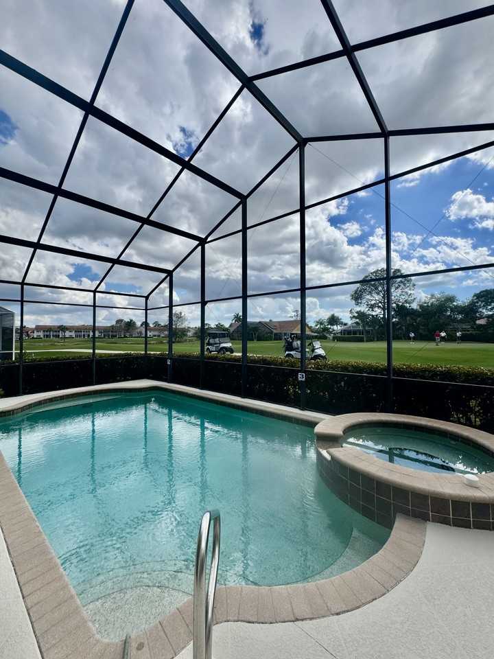 Experience the best of Naples living in the highly desirable Glen Eagle Golf & Country Club. This beautifully updated 3-bedroom, 2-bath home is ideally positioned on the golf course and features a private pool with serene fairway views — perfect for relaxing or entertaining. Freshly painted and featuring new flooring throughout, the home also boasts a newly updated kitchen and bar area, creating a modern and inviting space for everyday living and hosting guests. A spacious 2-car garage provides added convenience and storage. Located within this gated bundled golf community, the property includes a transferable golf membership, giving tenants access to championship golf, the clubhouse, dining, fitness center, tennis courts, and resort-style amenities. Offered partially furnished or unfurnished. Just minutes from downtown Naples, Gulf beaches, shopping, and dining — this home offers the perfect blend of comfort, style, and active Florida living.
