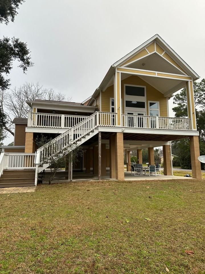 Beautiful waterview home with lots of upgrades. Fully furnished. Tile entry downstairs. Hardwood floors on main living level. Living/dining room with cathedral ceiling, recessed lights & french doors to covered deck. Fully equipped kitchen with granite countertops, walk-in pantry, center island & instant hot water at sink. Laundry room with washer & dryer and built-in cabinets off kitchen. Master bedroom features high ceilings, large walk-in closet, recessed lights and french doors to covered deck. Master bathroom features a double vanity with granite countertop, walk-in shower & soaking tub. Loft area with exercise equipment and 3rd bedroom located on third floor. Loft overlooks living room. Ceiling fans in all bedrooms. Large covered & open deck areas. Covered parking. Outside shower & half bath located on ground level. No pets. No smokers. Increased security deposit may be required for roommates. Elementary School: Navy Point Middle School: Bailey High School: Escambia To get more information or to request a showing of this property please contact 850-347-6113.