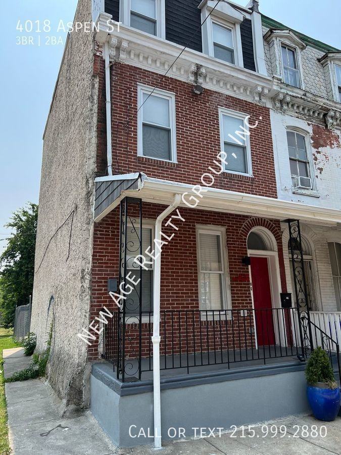 This spacious three-bedroom, two-bathroom apartment is located on the 4000 block of Aspen St in the heart of Philadelphia's Belmont neighborhood in West Philadelphia. The main level features a large living room, with the kitchen overlooking the space. A full bathroom is just off of the kithcen, with the first of the three bedrooms in the rear of the unit. Access to a private patio is also located off of the main level. A staircase leads to the second full-bathroom and the two other bedrooms. This property has in-unit laundry and central heat and air-conditioning. Tenants pay all utilities and renters insurance is required. To schedule a showing go to https www newagerealtygroup com vacancies or send an email to **** for more information. Please Note: The property will stay on the market until we received a security deposit (equal to one month’s rent). Once we receive your security deposit, we will take the property off the market. We collect first month’s rent, last month’s rent, and a security deposit for all our properties. These balances MUST be paid in certified funds (cash, money order, or cashier’s check - NO personal checks).
