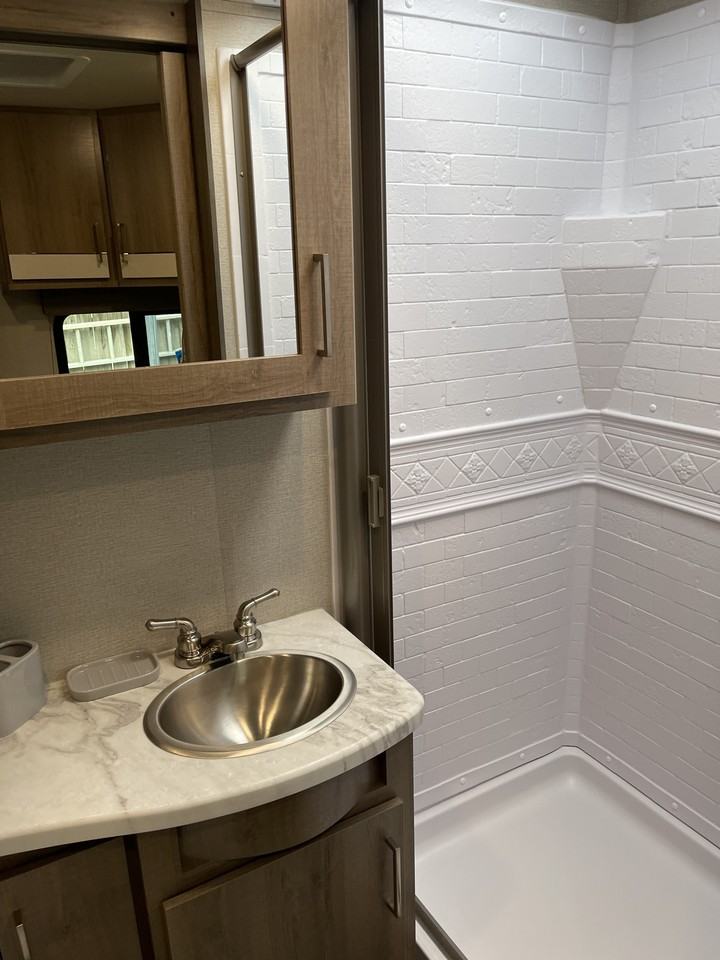 New rv camper. Spacious, roomy with full kitchen, dinette area, queen bed. Bathroom with shower. Lots of storage. Perfect for short term stay. Two recliners with heated seats and massage
