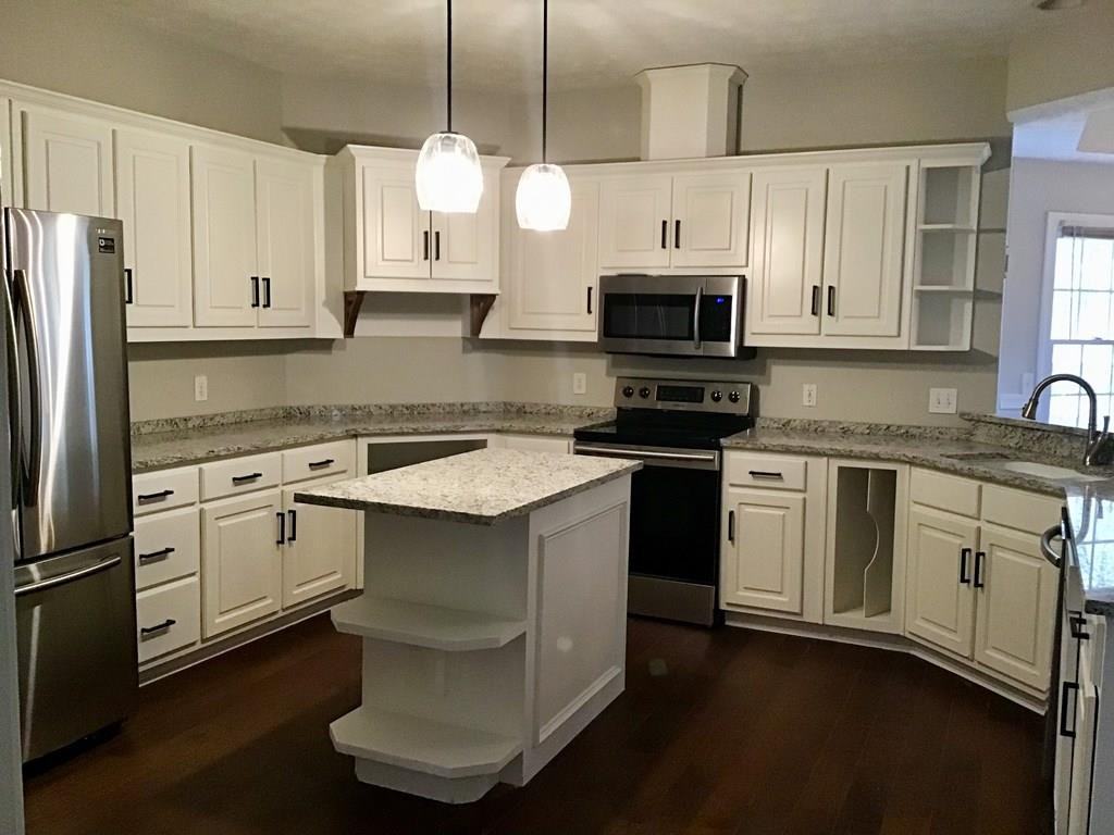 Custom built 4 bedroom 3.5 bath home on private drive on 5 acre lot with lots of hardwoods in a secluded 4 home private subdivision, zoned for North Columbus High. Newly renovated kitchen, master bath, powder room and living area. 3 car garage with large fenced in yard, massive great room, large master on the main with courtyard access and fireplace, classic library with fireplace, large walk in pantry and brand new rustic hardwood floors and ss appliances. This is a STEAL to rent at $2500/mo.