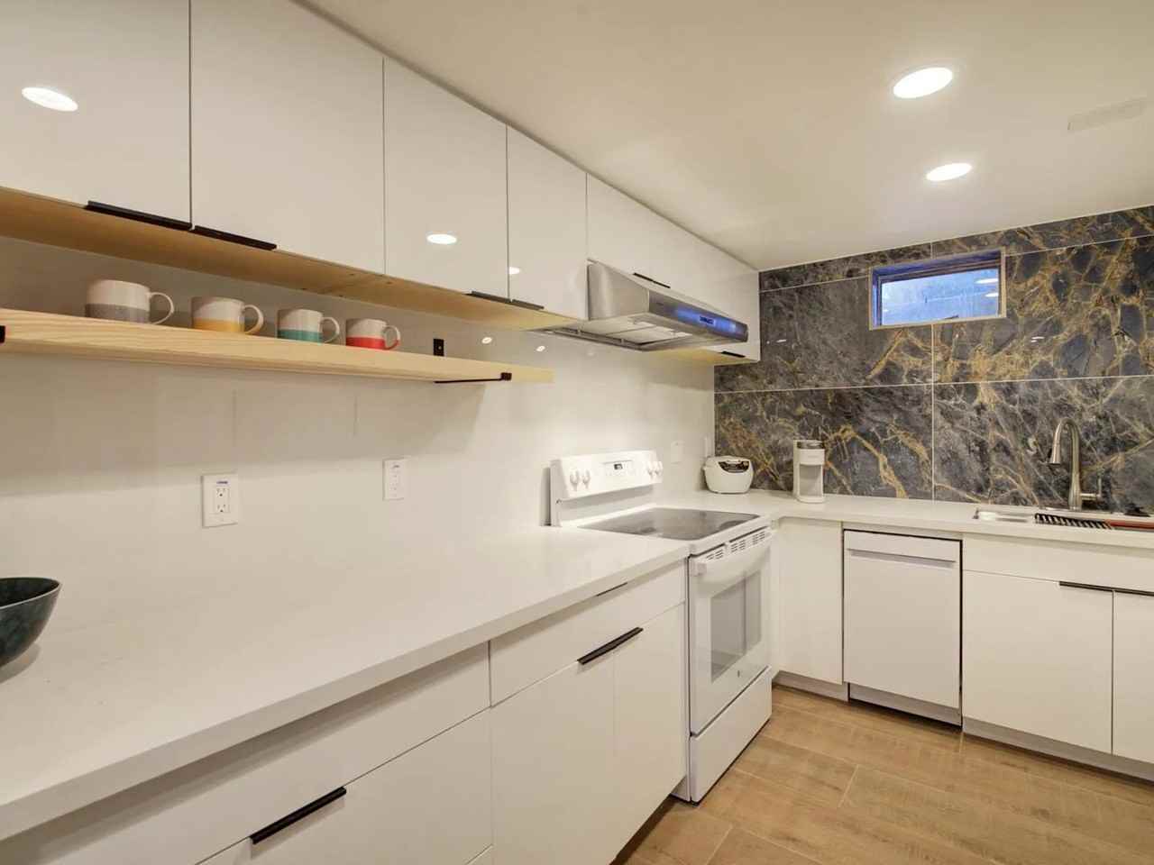 Downstairs unit with separate entrance at the backyard, separate laundry, new kitchen, new bathroom. Two bedrooms, one of which equals to 2 bedrooms space. One living room, two storage area. Beautiful backyard all year around.