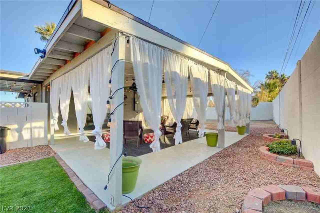 Boasting a 10,000 sq ft lot, this home is an open canvas. Have your own garden, have a workshop or playground for your children. This one-story home has been loved by the owner & it shows. Recent updates include new AC (2020), upgraded bathrooms, laminate flooring & customized faux wood walls. 3/4 of the garage has been converted to a casita w/ kitchenette including a sink & statement red refrigerator, separate bath w/ shower & room for a bed & couch. Head outdoors to enjoy a sprawling covered patio w/ total privacy & BBQ area w/ LED lights. Gorgeous landscaping in front w/ artificial grass & palm trees. Located in a cul-de-sac, this home features mountain views from the gated driveway. Easy access to the 95 & several local amenities including Boulder Station. RV Parking. No HOA.
