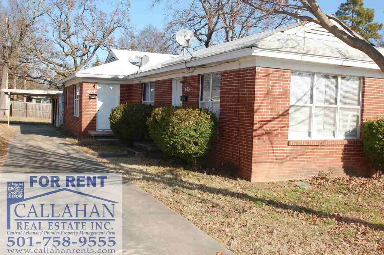 This is a 2 bedroom, 1 bath duplex in the Park Hill neighborhood of NLR. The kitchen is furnished with a stove and a refrigerator. There is also a carport.