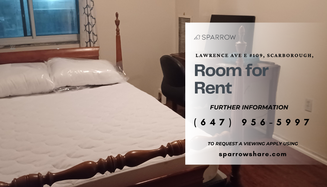 **Inquire Now: For fastest response, text me at +1 647-956-5997** Modern Room in East Toronto Welcome to our shared rental in the vibrant neighborhood of Lawrence Avenue East in Toronto! This cozy home offers access to a shared bathroom, backyard, kitchen, and dining room. Nearby, you'll find amenities such as parks, shopping centers, and restaurants. Plus, with convenient access to public transportation and bike parking available, exploring the city is a breeze. Enjoy the perks of shared living in this friendly community! Some more info: Bedrooms available: 1 Bedroom B - $1030 (Large room) Bathrooms: 2 (Shared) Furnished: Yes Utilities: Air Conditioning, Heating, Washer, Dryer, Internet, Elevator, Gym, Swimming Pool, Cable TV Parking: Not available Address: Lawrence Ave E, Scarborough, ON M1E 4V4, Canada Pets: Not allowed Additional Benefits: Tenant Insurance Included: Renting through Sparrow includes tenant insurance at no extra cost, providing you with added peace of mind. Credit Building: Your rent payments through Sparrow will be reported to credit bureaus, helping you build and boost your credit score over time. Disclaimer: This listing has been syndicated from sparrowshare.com, including its content, rental terms, and images. Sparrow is used to verify the identity and compatibility of those interested. The advertised property is owned and/or managed by Coleen from Sparrow Living Inc.