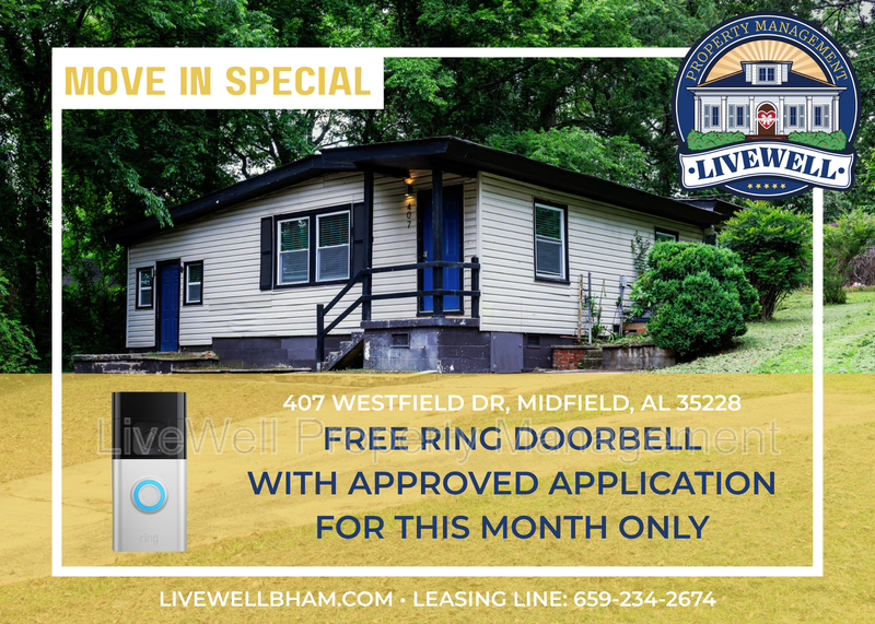 -MOVE IN SPECIAL- FREE RING DOORBELL WITH APPROVED APPLICATION Welcome to this charming 4-bedroom, 1-bathroom home located in the desirable Midfield, AL neighborhood. This lovely house features LVP flooring throughout, providing a modern and low-maintenance living space. Situated on a cul de sac, this property offers a peaceful and private setting. Additionally, there is an additional building on the premises, perfect for storage or a workshop. Conveniently located near Home Depot and US Steel, this home is ideal for those looking for easy access to shopping and employment opportunities. Don't miss out on the chance to make this house your new home! Application fee $70 per adult Admin fee $95 per residence We can work around bad credit and take vouchers! Amenities: lvp flooring, additional building, cul de sac, quiet street, near home depot and us steel