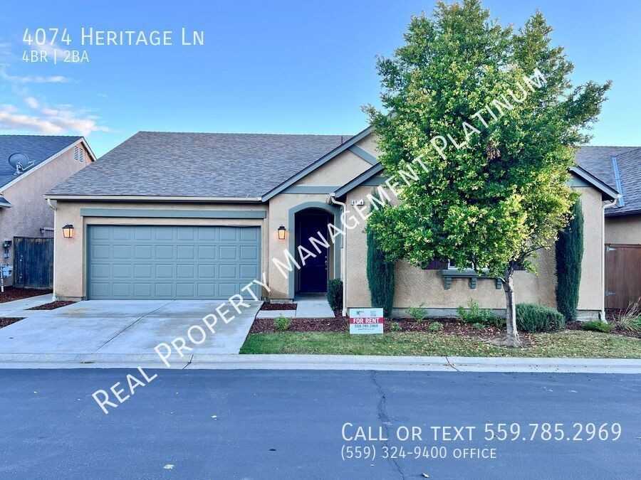 CLICK HERE to schedule a showing: https showmojo com l 5a521f70c8 4 bedroom | 2 bathroom | 1,804 sq. ft. Harlan Ranch Community, Sparkling olympic size community pool, park & bike trails. Single story home. Built in 2009. Spacious Open floor plan in living area. Kitchen features granite countertops, stainless appliances; refrigerator, gas range, dishwasher & built-in microwave. Center island, breakfast bar and dinette area/flex space off the kitchen. Walk-in Pantry. Ceiling fans throughout. Spacious Primary bedroom with an en suite; dual sinks, a walk-in shower, soaking tub, and walk-in closet. 3 additional bedrooms. 1 full guest bathroom with a shower/tub combo. Energy efficient. Tile in kitchen and bathrooms & laminate flooring in all bedrooms. 2 car attached garage. Front yard care is provided. Backyard has covered patio, grass area, and flower garden box. Tenant responsible for back yard care. Yes small pets ok with pet rent and deposit. No smoking. Renter's insurance is required. Clovis schools. Cross streets are Shepherd 168 Fwy. Credit score above 650 REQUIRED. No smoking. Tenant responsible for all utilities. HOA is included. Call (559) 785-2969 to schedule a showing or (559) 324-9400 to contact the office. DRE# 01901101. All information is deemed reliable but not guaranteed and is subject to change. Non Smoking Renter's Insurance Required