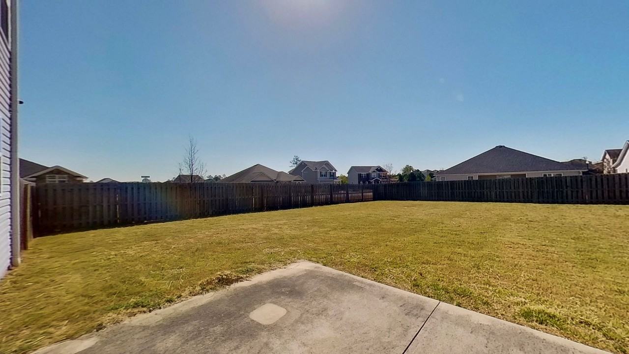 Sitting at a spacious 2453 sq ft this 4 BR & 2.5 BA home welcomes you w/a covered rocking chair front porch & gorgeous hardwood foyer entrance. Intimate formal dining w/coffered ceiling, large gourmet kitchen featuring double door pantry, new appliances, built in speakers, granite countertops w/ center island, stained all wood cabinetry, stainless steel appliances including smooth top range, built in microwave, dishwasher&garbage disposal. Butlers passage has 2 additional closets. Great room features cozy fireplace & access to back patio & private spacious backyard. Upstairs offers master suite with private bath including separate shower, garden tub and double vanity and a very large walk in closet. Bedrooms have vaulted ceilings. Laundry room is located on the upper level. 2 car oversized garage. Smart ring security and nest thermostat. Conveniently located 1 mile from Ft. Gordon's Gate 1 & 2,