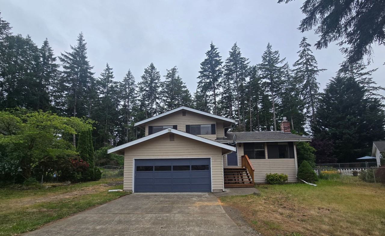 Home is getting painted and then we will update photos. 3 Bedroom with a Den in the Oak Park community. This property boasts 2.5 bathrooms, attached garage and is conveniently located just minutes away from shopping centers, the hospital, and Hwy 101. Laminate flooring through out Den and half bath downstairs, main level has the kitchen, living and dining room. Laundry is located in the garage. Gas fireplace and electric furnace for heat. Mason County Garbage PUD 3 for power Oak Park for water Year lease NO PETS Rent, deposit due at time of move in.