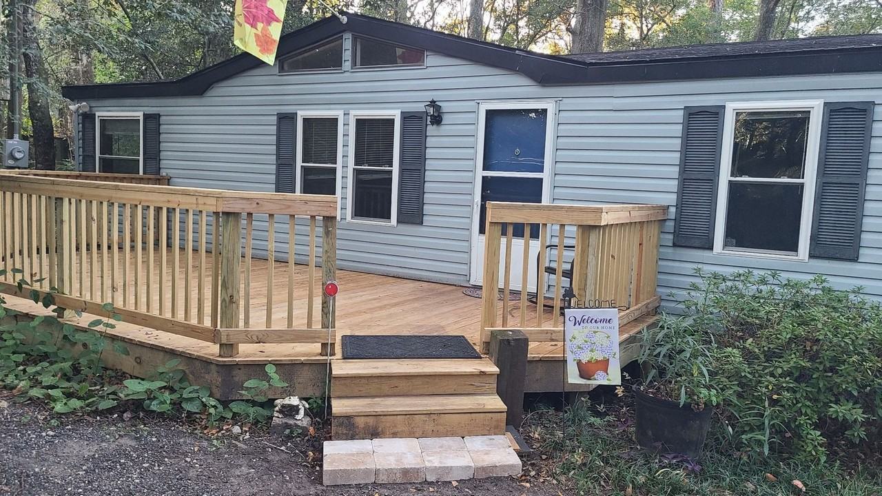 Welcome to this private oasis in Havana, FL. This charming 3-bedroom, 2-bathroom house boasts a spacious deck perfect for outdoor entertaining and enjoying the beautiful Florida weather. With vaulted ceilings and a recent renovation, this home offers a modern and inviting atmosphere. Situated on an acreage lot, you'll have plenty of space to roam and enjoy the large yard. The stainless steel appliances in the kitchen add a touch of luxury to this manufactured home. Don't miss out on the opportunity to make this home your own!