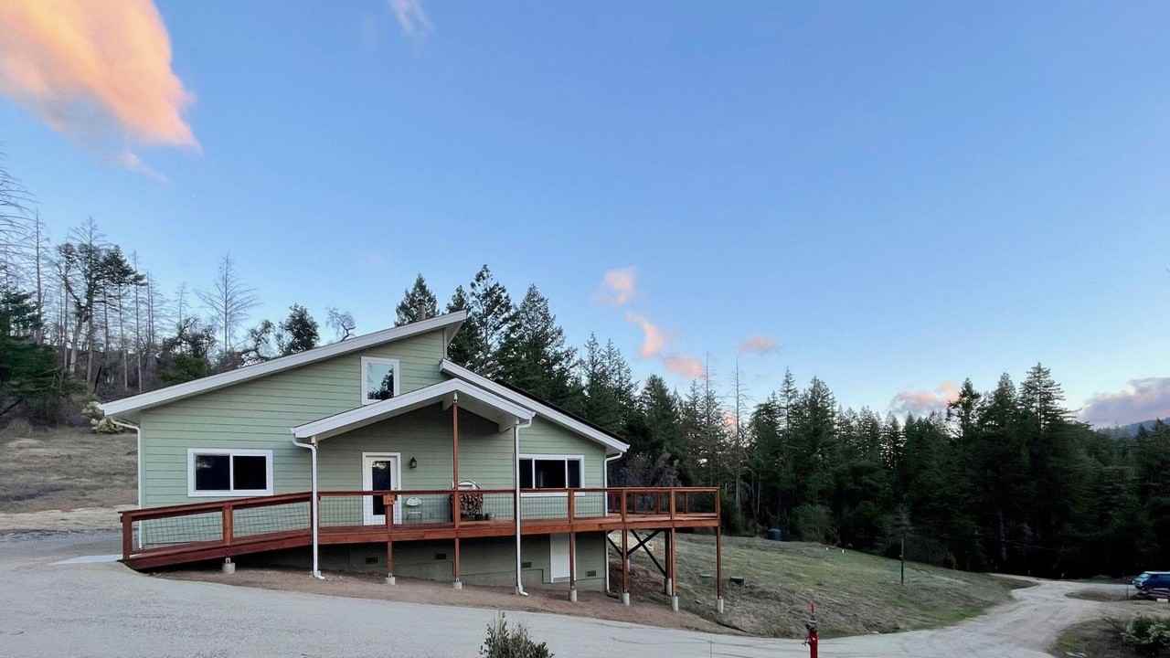 Early Christmas present for you!! The owners have graciously asked me to credit the next renter with free renter till January 1, IF new qualified renter signs lease and pays first months rent. (this credit of days left in Dec at signing will be put toward second month rent. Looking for a serene, sunny, private setting? Then you’ve got to see this beautiful, end-of-the road 5 acre parcel with a home built just 1 year ago! Light filled with vaulted ceilings and windows, all the main rooms are on the first floor. Upstairs there’s a 250 foot loft plus a large storage room. Primary bedroom features a deluxe bathroom. The open sunny kitchen and dining room have a sliding glass door leading to a sunny deck overlooking a rolling meadow, big open skies and distant mountain views. Forced air heat and wood stove will keep you warm on those chilly nights. The kitchen has granite counters & stainless steel appliances including a dishwasher and gas stove. Separate laundry room with washer and dryer. Acreage can accommodate livestock if approved by owner and fenced by renter. This rental is located 1/2 mile off Big Basin Hwy 236 (between BC Golf Course and China Grade. (90 % paved roads.) $4400 a month rent, $4400 security deposit, approved pets each have a $500 security deposit. Renter to pay all utilities. Another renter lives on the property in an RV, far below the main house.