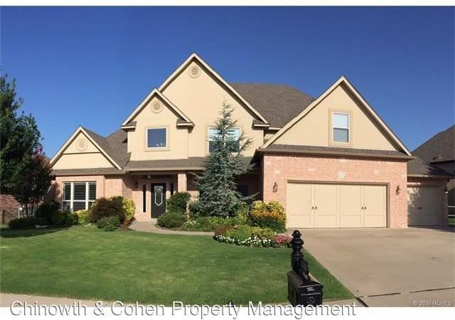 Broken Arrow - Estates at Shenandoah - Stunning home with 5 bedrooms, office, formal dining, formal living room with gas logs fireplace and family room with gas logs fireplace & mounted TV. Granite kitchen with center island, double ovens, gas cook top, microwave, eat at bar, breakfast nook & large walk in pantry. Laundry has 2nd pantry, sink & cabinets. 3-car garage with 2 openers and storm shelter in floor. Storm shelter in garage floor. Covered front porch. Back patio with pergola. Fully fenced backyard.