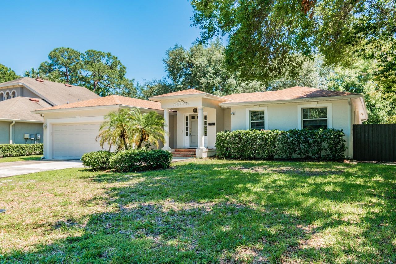 IN-PERSON SHOWING ALLOWED w/ social distancing and contact-less process encouraged and enforced. 2260 SQ FT 4 BR/ 2 BA + 2 CAR GARAGE single-family rental in South Tampa. HUGE CORNER LOT HOME IN DESIRABLE SOUTH TAMPA LOCATION, 78'X 138' corner lot in beautiful Swann Estates EXCELLENT ZONED K-12 PUBLIC SCHOOLS: Grady Elementary School, Coleman Middle School, Plant High School DESCRIPTION Enter the tile foyer and make your way to the inviting living room with crown molding, original hardwood floors and natural light from multi-paned French doors to lanai. Step-down hallway leads past corner wet bar and sliding glass doors into the dining room with vaulted ceilings, accenting chair rail and wood floors. Designer kitchen features travertine tile backsplash, dual sinks with disposal, dishwasher, stainless steel appliances (newly installed in 2017, dishwasher 2019), plentiful cabinets, closet pantry, and quartz countertops, including breakfast bar overlooking dining room, built-in oven and ceramic cooktop. Family room affords alternative to open and central living room. Additional step-down hallway leads to master retreat with vaulted ceiling, French doors to lanai, custom walk-in closet with built-in organizers and en suite bathroom w/stand alone shower, large jetted soaking tub with glass block wall behind and skylights above, separate W/C and bench vanity. Spacious tiled courtyard is partially covered and completely screened with North-side opens to yard. Other amenities include 3 additional bedrooms, family room, indoor utility room. New Roof April 2017, New Water Heater May 2017, New Garage Door Remote System 2018.