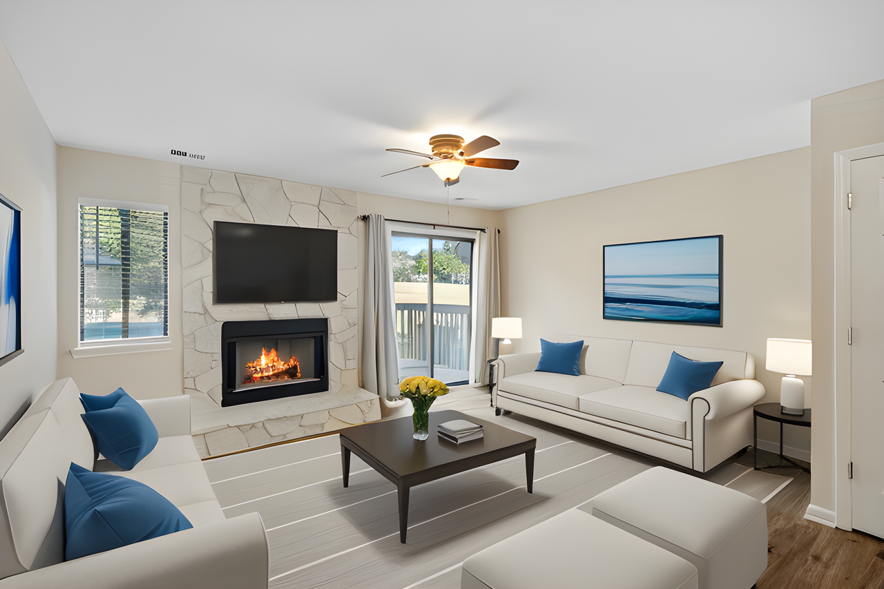 Enjoy overlooking the 7th hole on the North Course of desirable Raintree Country Club on your deck! Enjoy the view and escape the hustle of the city. This Golfview community is quiet and tucked back in nature with the golf course surrounding it. Updated 2 bedrooms and 2.5 baths. Newly installed LVP flooring throughout. Bedrooms upstairs feature trey ceilings with ceiling fans. Kitchen features granite, stainless steel appliances, java stained cabinets and tile floors. New HVAC, neutral paint colors, granite in all bathrooms and contemporary white stone wood burning fireplace. Townhome is virtually staged in photos and comes unfurnished. Water in included in rent, tenant responsible for all other utilities. 2 reserved parking spaces. Small dogs conditional with non-refundable pet fee. Pictures are virtually staged and home is unfurnished. Available early March 2025. Currently occupied, do not disturb residents. Schedule tour with real estate agent. Townhome is part of HOA community and residents must adhere to community rules.